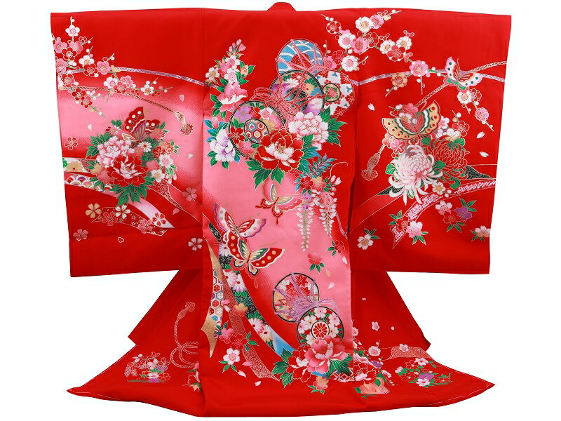 【10%OFF】お宮参り 着物 正絹 長襦袢 セット 女児 女の子 子供 産着 祝着 金加工入り 送料無料 un-43 赤【ss2512】