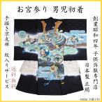 お宮参り 着物 男の子 絹100% 正絹初着 黒色 手描き 手染め 浜ちりめん変わり三越生地 純国産糸使用 桐箱付き 日本製