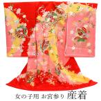 お宮参り 産着 女の子 赤 束ね熨斗 花 鞠 着物 長襦袢 セット 古典 七五三 3歳 祝着 のしめ 和装 和服 正装