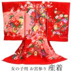 お宮参り 産着 女の子 赤 御所車 束ね熨斗 蝶 着物 長襦袢 セット 古典 七五三 3歳 祝着 のしめ 和装 和服 正装