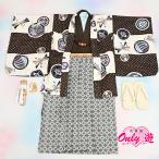 七五三 着物 3歳 販売 女の子 三歳 着物セット 被布セット 黒 白 幾何学 ストライプ 被布着 きもの 和服 和装 女児 子供 かわいい レトロ