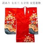中古 子供着物 祝い着 合成繊維 レッド 7歳用 七五三 重ね襟つき 和装 呉服 和服 きもの