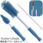送料無料 哺乳瓶ブラシ 乳首ブラシ 3点セット ブラシセット ボトルブラシ 哺乳びん 水筒 グラス シリコン ソフト 回転 吊り下げ 洗浄 ピンク ブルー ライトグレー シンプル 便利