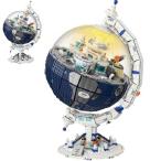 NUTCRACKER 地球儀 宇宙ステーションビルディングブロックセット ライト付き 360°回転する地球儀ブロックモデルおもちゃ、70006 夜光3Dパズル 宇宙惑星ステーシ