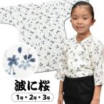 <メール便対象> お祭り用品 子供用 鯉口シャツ 波に桜 紺 1号・2号・3号