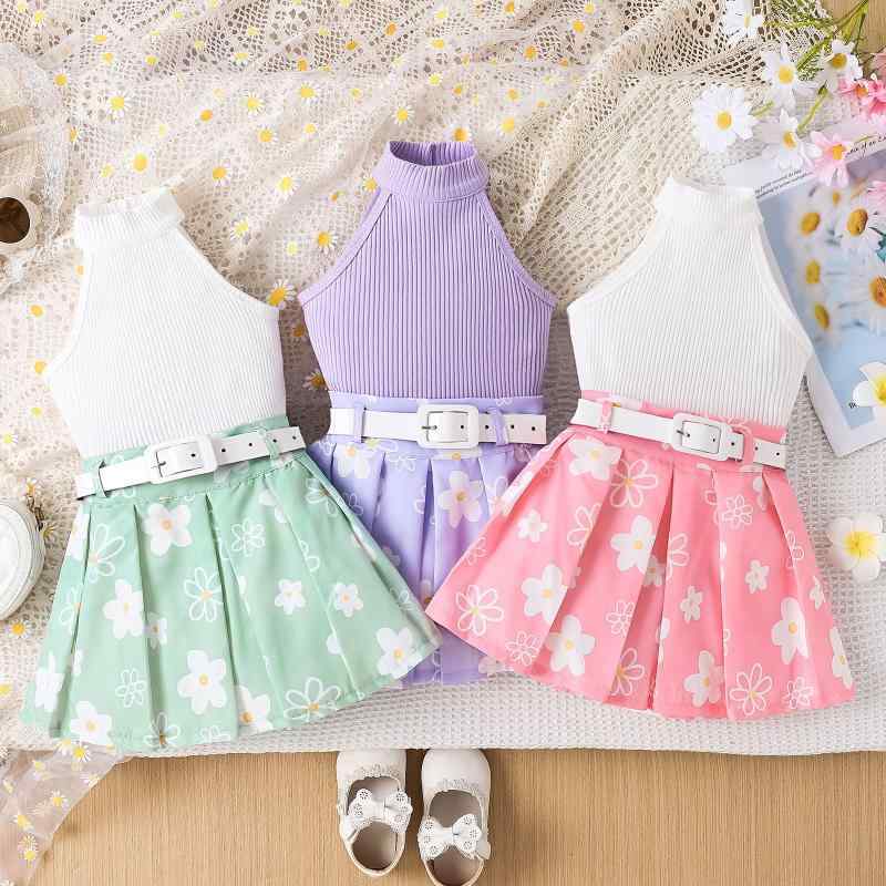 キッズ 女の子 セットアップ ノースリーブ トップス プリーツスカート 春夏 子供服 かわいい おしゃれ ガールズ ウエスト切り替え 普段着 部屋着 お出かけ2