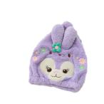 タオルキャップ 子供 女の子プール タオルキャップヘア髪のためのドライタこども髪の毛 速乾タオル吸水 コーラルフリース カートゥーン動物 (パープル)