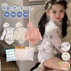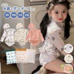 水着 キッズ 女の子 子供 3点セット 水着子供 ベビー ジュニア ベビー水着 90 100 110 120 子ども 水着女 水泳帽 スイムキャップ UVカット 長袖 ワンピース