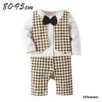ロンパース カバーオール 長袖 ベビー 子供用 キッズ 男の子 蝶ネクタイ チェック柄 ベスト風 重ね着風 春 秋 フォーマル かわいい おしゃれ 結