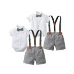 セットアップ キッズスーツ 半袖シャツ+サスペンダー+ネクタイ+チェック柄パンツ シャツ 4点セット キッズ 子供服 男の子