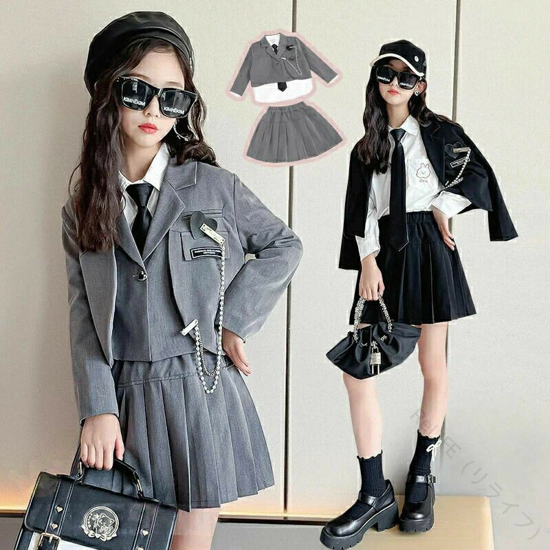 3点セット 卒業式 スーツ 女の子 キッズ 子供 ネクタイ付き 120 130 140 150 160 170cm 親子服 大きいサイズ 小学生 卒服 ジュニアフォーマル スーツ フォーマル お受験 冠婚葬祭 法事 春秋対応
