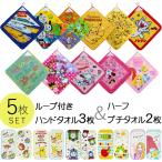 タオルハンカチ 子供 キャラクター 5枚セット ループ付きハンドタオル 3枚 ハーフハンカチ 2枚 保育園 幼稚園 男の子 女の子 入園準備 まとめ買い