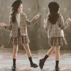 子供スーツ 女の子 キッズ 子供服 2点 セットアップ 上下 入学式 入園式 フォーマルスーツ アンサンブル ジャケット 制服 チェック柄 スカー 120 130 160cmト
