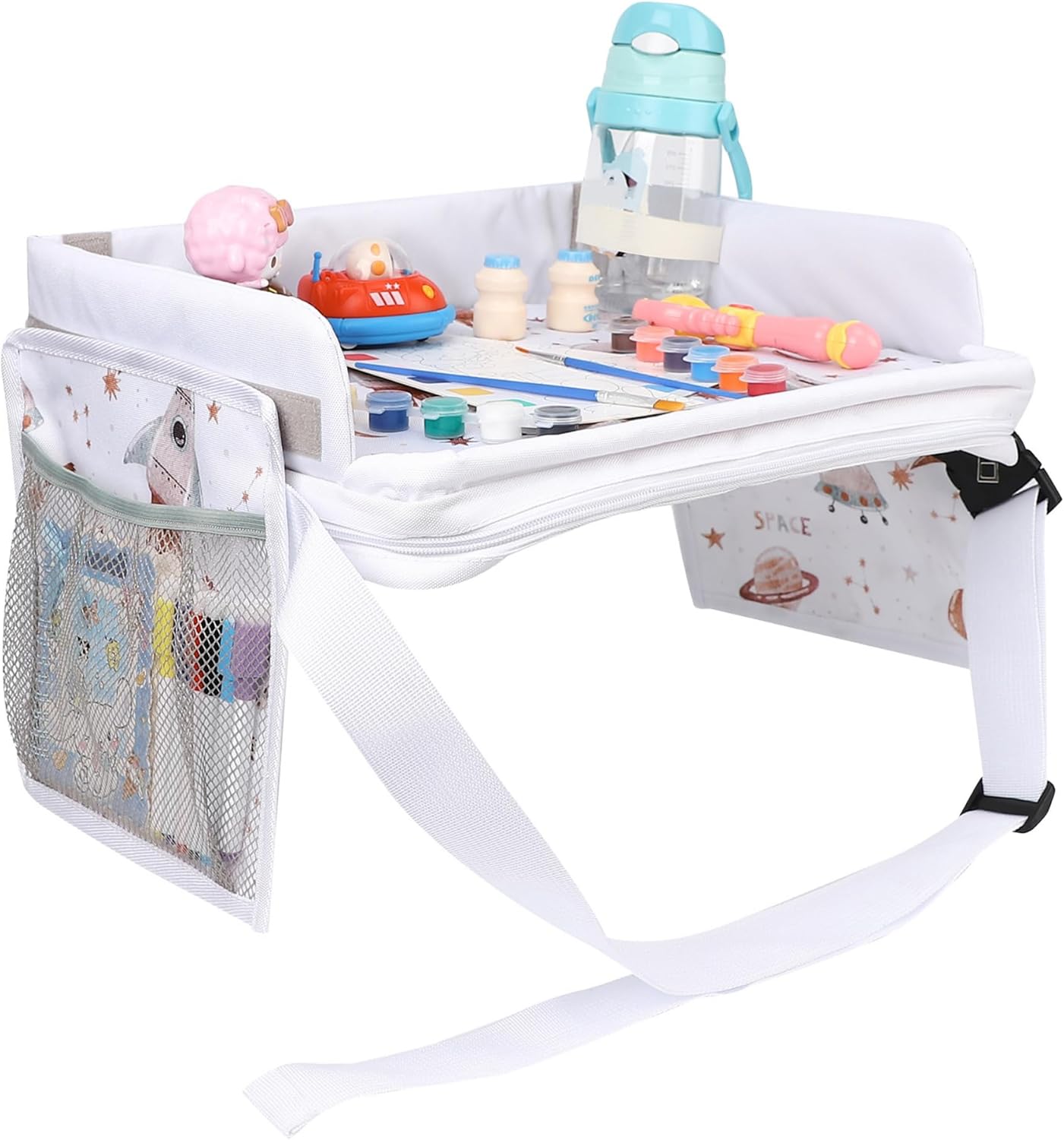 チャイルドシート ベビートレイ キッズトレイ 子供デスク 子供トレイ折りたたみ式 キッズ車内テーブル ベルト固定&タブレットホルダー付き ベビーカー対応 ドライブお絵かき お食事テーブル 子ども用