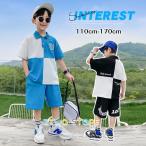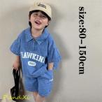 韓国子供服セット キッズ 女の子 男の子 純綿 夏服 2点セット 英字柄 半袖 デニムポロシャツ+デニムパンツ ベビー ジュニア 子ども 上下セットアップ ゆったり