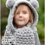 帽子 ニット帽子 キッズ マフラーつき 子供 子ども 耳つき クマ耳 可愛い かわいい アニマル 動物 おしゃれ ニットキャップ 男の子 女の子 男児