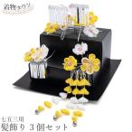 七五三 753 着物 子供用髪飾り 3個セット 黄色 イエロー 2023 / 2108 キッズ コーム 髪留め 和装 小物 5歳 7歳 和柄 花柄 和雑貨