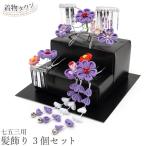 七五三 753 着物 子供用髪飾り 3個セット 紫 パープル 2105 キッズ コーム 髪留め 和装 小物 5歳 7歳 和柄 花柄 和雑貨