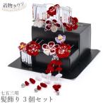 七五三 753 着物 子供用髪飾り 3個セット 赤 レッド 2024 / 2100 キッズ コーム 髪留め 和装 小物 5歳 7歳 和柄 花柄 和雑貨