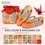 巾着バッグ 草履 巾着 セット 七五三 3歳 7歳 子供 キッズ 女の子 和装 ゴールド オレンジ 緑 赤 白 鈴 エナメル 帯生地 和装小物