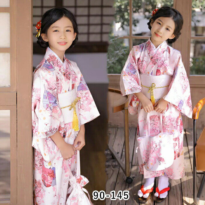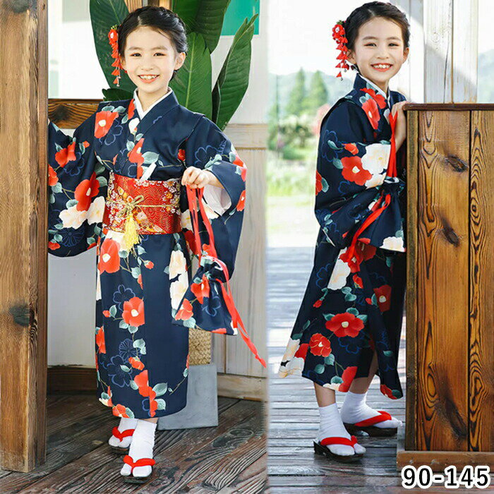 浴衣 子供 浴衣 和装 2点 女の子 和服 着物 花柄 作り帯 可愛い ゆかた ズ 七五三 花火大会 お祭り 部屋着 お出かけ 華やか 花火大会 夏祭り お盆 夏休み 文化祭 卒園式 記念撮影 90-145