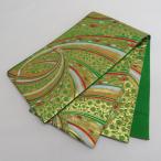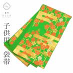 【中古】 七五三 7歳 女の子 袋帯 手結び帯 ポリエステル 全通柄 緑 丸文 菊 蝶々 葵 華文 長さ387cm 幅27cm リサイクル帯 中古帯 仕立て上がり帯 七歳用 子供帯 お祝い 着物用 和装 和服 練習用にも 即日発送
