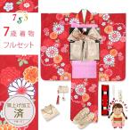 七五三 着物 7歳 フルセット 肩揚げ済み 子供着物 結び帯セット 合繊「赤 菊に雪輪」OYM672d101PP