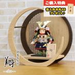五月人形 幸一光 子供大将飾り 翔(しょう) 黒小札紺糸威 透かし麻の葉模様 木製 円形 三日月形飾り台 (大) コンパクト おしゃれ