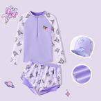 水着 キッズ水着 長袖フリルラッシュガード+ティアードフリルパンツ+キャップ 3点セット キッズ 子供 女の子