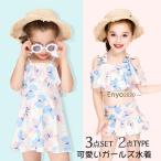 子供水着 水着 子供服 みずぎ 女の子 かわいい 子供女子 ガールズ セパレート ワンピース 3点セット 帽子付き