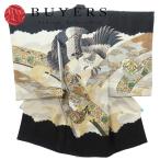 中古 子供着物 七五三 襦袢付き 正絹 化学繊維 ブラック 男の子 祝い着 お宮参り 和装 呉服 和服 きもの