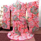 子供着物 アンティーク 昔 赤 白 ピンク 水色 緑 ベージュ 花々 花玉 女児用 四つ身 総柄 レトロ 上げあり