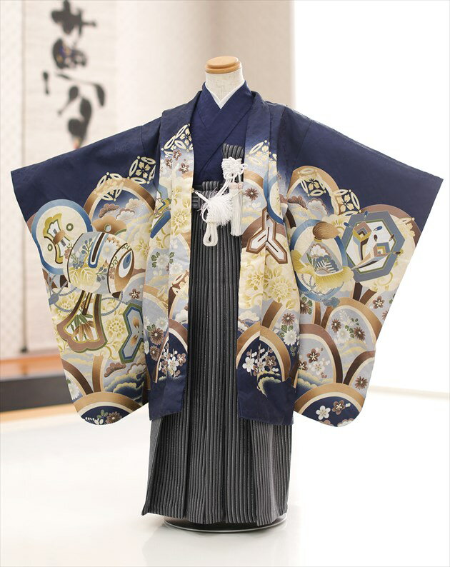 七五三 5歳 男の子 着物レンタル d5455 袴レンタル 753レンタル 七五三フルセット 貸衣装 卒園式 子供着物 羽織袴 結婚式 5才 七草祝い 初詣 かっこいい おしゃれ 人気 モダン 上品 高級「和がまま」ブランド 紺地に絢爛彩吉祥と飛翔鷹 2022【レンタル】