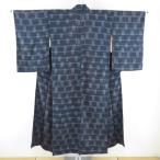 中古 子供着物 ウール アンサンブル 着物 羽織 セット 5〜6歳女児用 濃紺地に格子文様