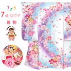 京都室町st. 七五三 着物 7歳 フルセット 総柄の女の子用 子供着物 結び帯セット(合繊)「水色、ねじり梅に八重桜」PTK380d103YY