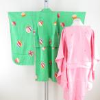 子供着物 アンティーク 昔 赤 白 ピンク 水色 緑 ベージュ 花々 花玉 女児用 四つ身 総柄 レトロ 上げあり