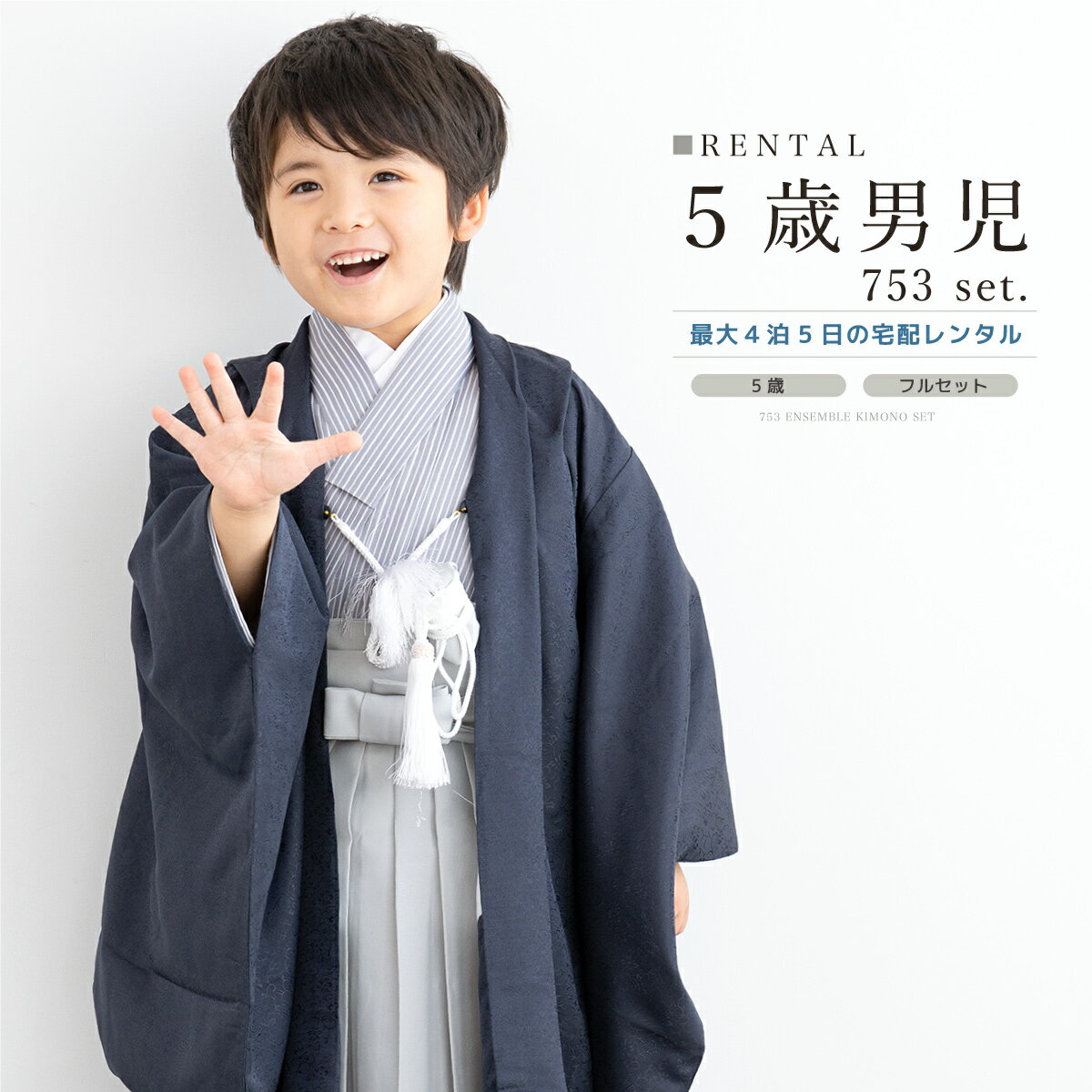 【12/1限定☆クーポンで10%OFF】七五三 着物 男の子 5歳 レンタル 羽織袴 袴セット フルセット 縞 紺 グレー 着物レンタル 五歳 袴 子供着物 男児 モダン 着物 正月 卒園 貸衣装 創美苑【往復送料無料】
