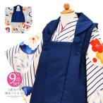 七五三 着物 3歳 女の子 被布セット「紺色 ストライプ、丸に花」三歳女児被布セット 子供着物 フルセット 三才のお祝い着 3才向け(メール便不可)