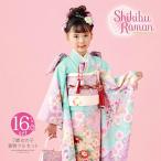七五三 7歳 四つ身着物フルセット ブランド 式部浪漫「ミントブルー 束ね熨斗に源氏香、四季花」女の子 7才 女児用 子供着物 七才のお祝い着向け(メール便不可)