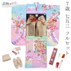 七五三 着物 7歳 フルセット 女の子 水色 ピンク くすみ色 結び帯 金 銀 ゴールド シルバー 筥迫セット 花柄 四つ身 桜 着物フルセット 販売 購入