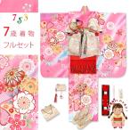 京都室町st. 七五三 着物 7歳 女の子 フルセット 絵羽柄の子供着物(合繊)と結び帯・はこせこコーディネートセット「ピンク、ねじり梅と鞠・桜」FBR-06d101RR