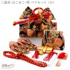 七五三 はこせこ 帯 ペアセット 三歳用 ブラック 黒 (小)753 3歳 3才 はこせこセット 女の子 筥迫セット 草履17cm 結び帯