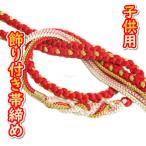 七五三 着物 子供用 レーヨン帯締め 丸組紐 7歳3歳兼用 赤色×白色×金色×ピンク パール飾り付き