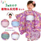 京都室町st. 七五三 お正月 ひな祭りに 3歳女の子着物(揚げ加工済み)&兵児帯セット「紫の着物&えらべる兵児帯7色」THFM-hhset