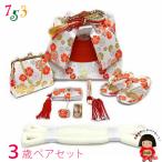 【セット(着物+帯、被布)】七五三 着物 3歳 女の子 フルセット 被布セット 結び帯セット 子供 キッズ 帯 結び帯 花柄 和装 和服 七五三参り お正月 節句 100