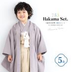 七五三 着物 5歳 販売 五歳 袴セット 羽織 半襦袢 袴帯 羽織紐 扇子 懐剣 お守り袋 雪駄 セット 男の子 和柄 縞 グレー ベージュ 男児