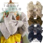 結び帯 七五三 7歳 女の子 くすみカラー オフホワイト ベージュ カーキブラウン レモンブルー ネイビー ブラック 作り帯 子供 着物 帯 キッズ 晴れ着 和装 和服