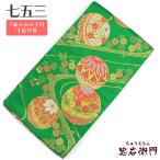 中古 七五三 7歳 女の子用 手結び帯 ポリエステル 緑 長さ384cm 幅27.5cm リサイクル 和装753 七五三 お祝い 着物 仕立て上がりリサイクル帯 即日発送