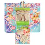 七五三 着物 7歳 女の子 着物フルセット 濃淡水色ぼかし紫色流れ染め 重ね桜 金駒刺繍 白地雪華文様帯セット 足袋に腰紐など20点セット 日本製