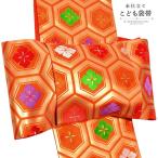 七五三 帯 7歳用 正絹袋帯 「朱色 亀甲花菱文」 未仕立て 西陣特選 袋帯 正絹 全通柄 七歳用 女の子 子供 帯 <T>(メール便不可)